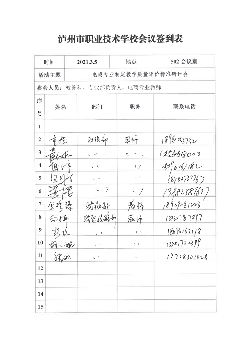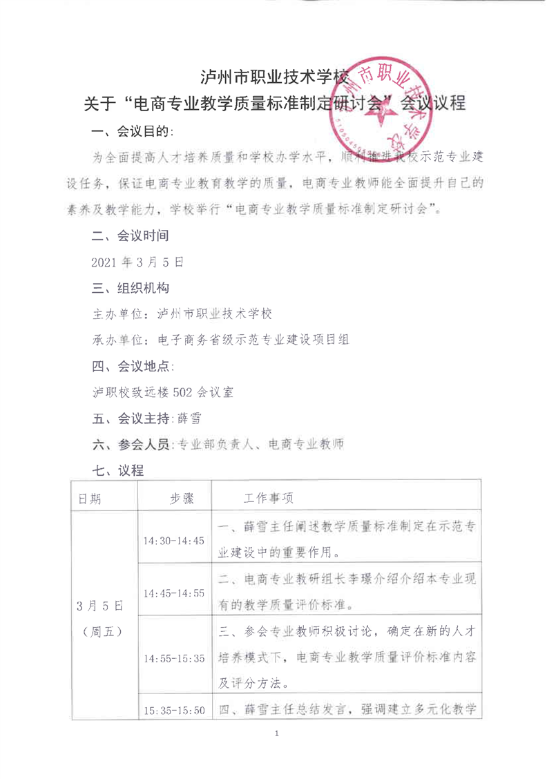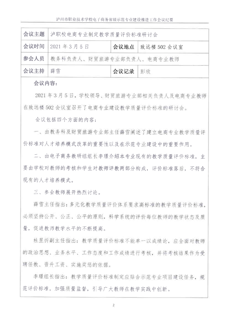 4-2 电商专业制定教学质量评价标准研讨会会议议程 签到表 会议纪要