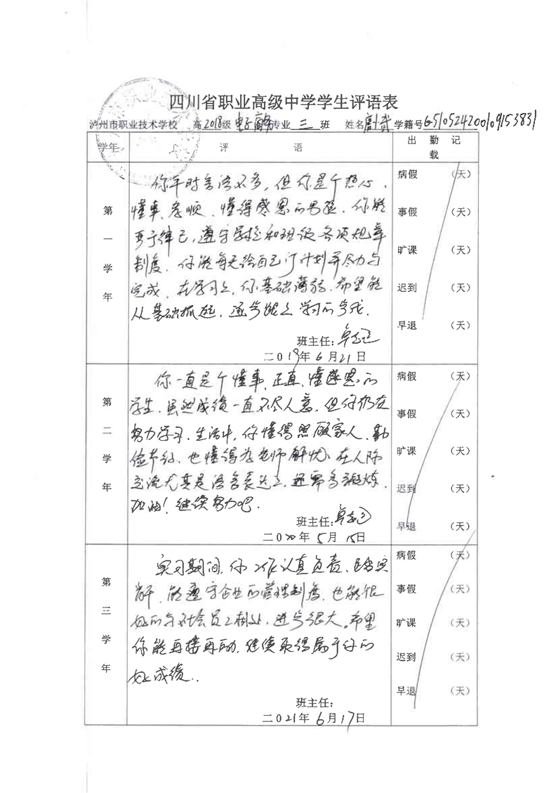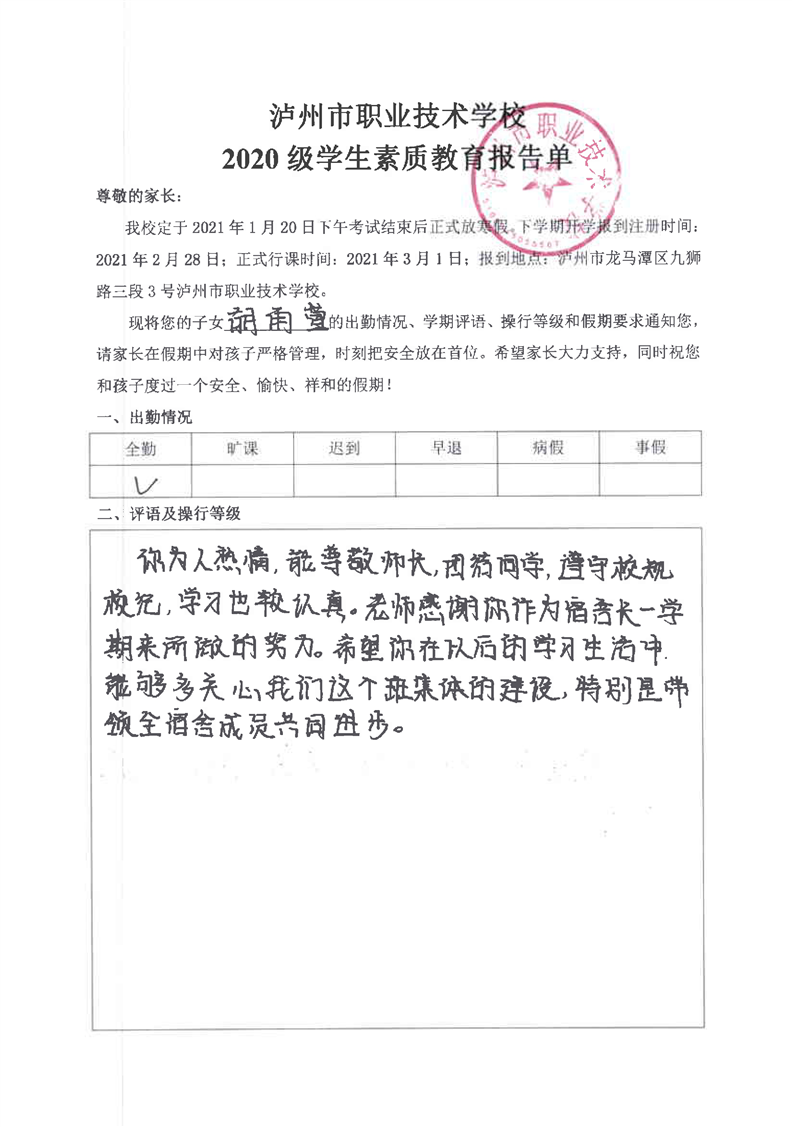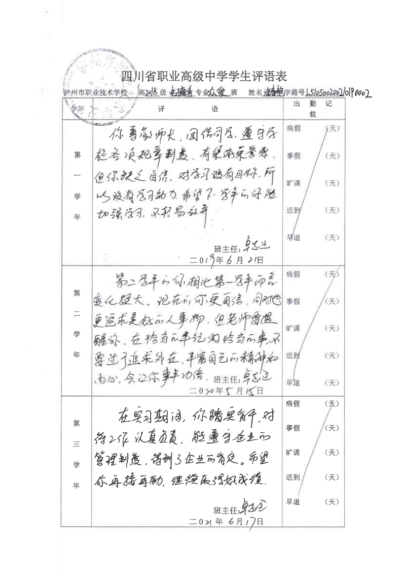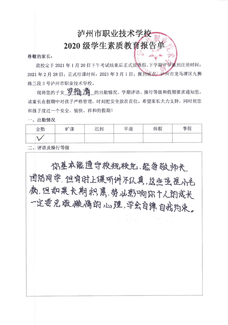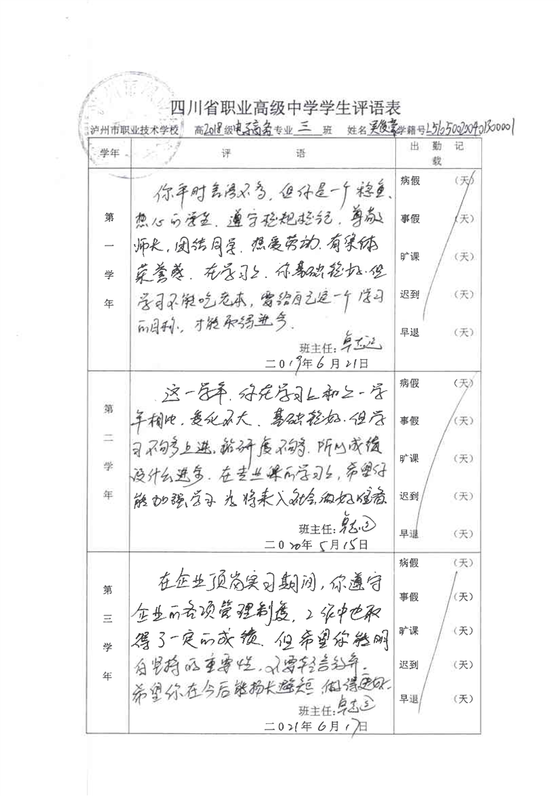 4-7 电子商务专业学生素质报告单与评语表