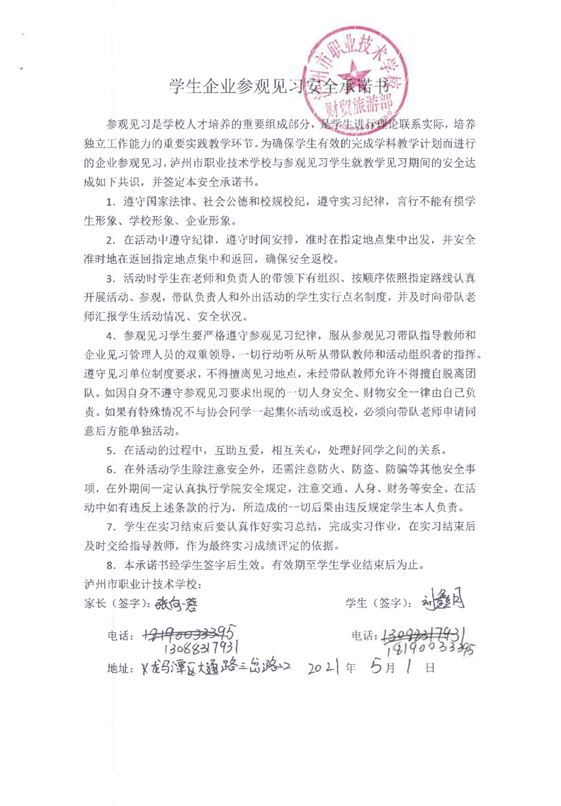 2-5-2泸州海蛎子跨境电子商务股份有限公司参观学生安全承诺书