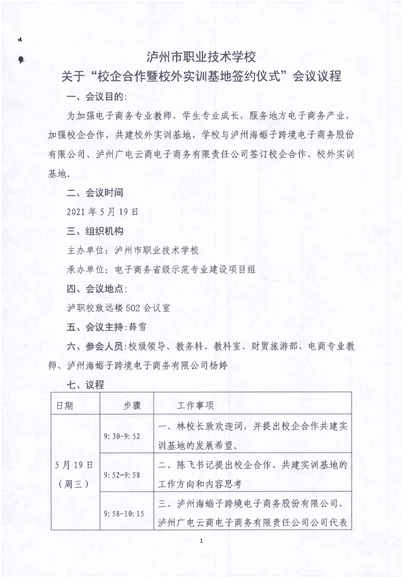 2-8-1校企合作暨校外实训基地签约仪式会议议程