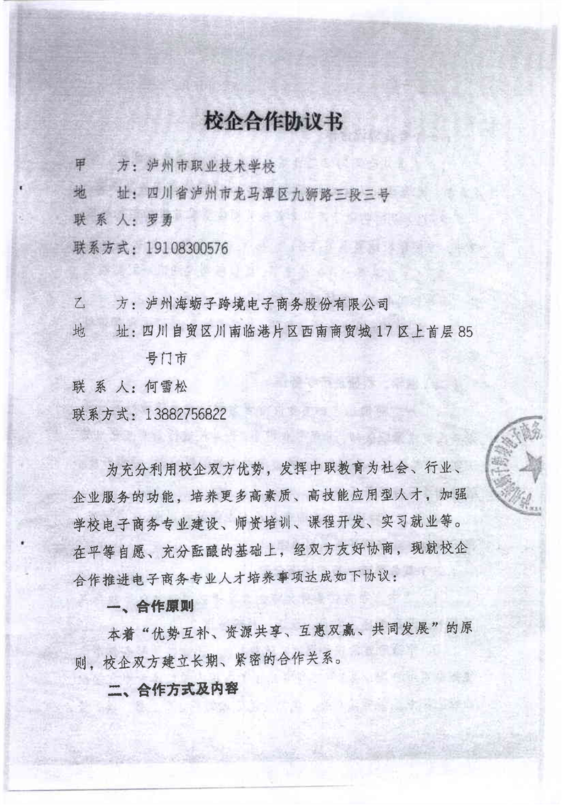 3-1泸州海蛎子跨境电子商务股份有限公司校企合作协议书