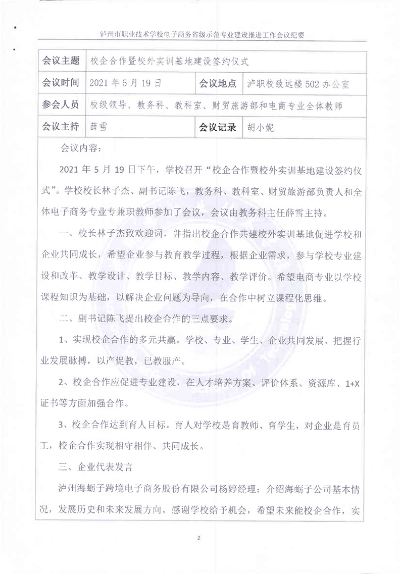 3-6-3泸州市职业技术学校校企合作签约仪式会议纪要
