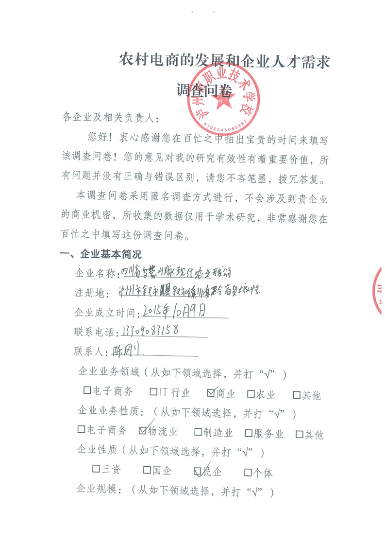 3-5-4 乌蒙山脉现代农业开发公司调查问卷