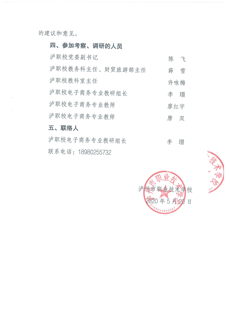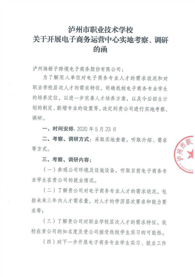 3-5-7 泸州市职业技术学校关于开展电子商务运营中心实地考察、调研的函(海砺子)