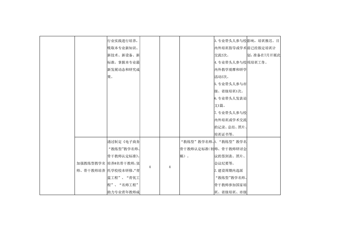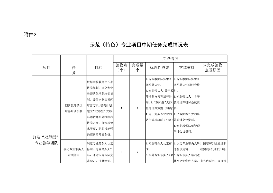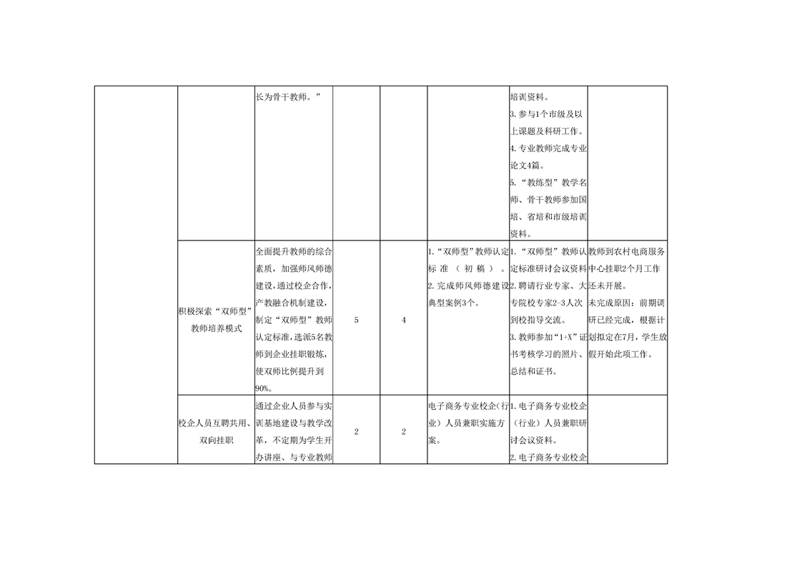 打造“双师型”专业教学团队 中期任务完成情况表