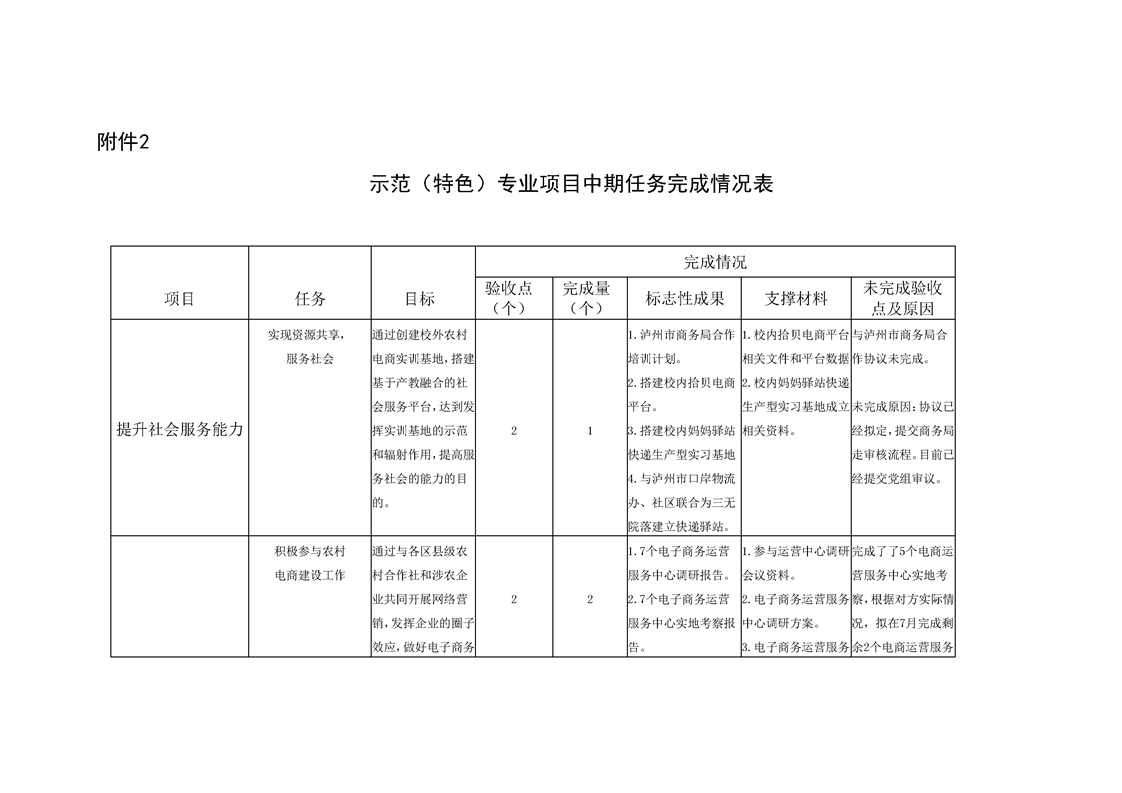 提升社会服务能力 中期任务完成情况表
