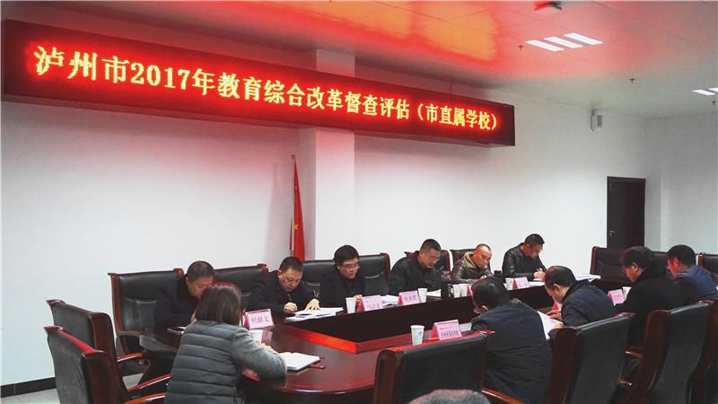 2017年12月15日下午,泸州市直属学校教育综合改革试点项目2017年督查评估工作会议在泸州市职业技术学校举行。泸州市教育综合改革评估专家组成员谢铭、杜开君、陈林、唐明友、马宗文、杜献文出席了会议,市直属学校的相关负责人参加了会议。