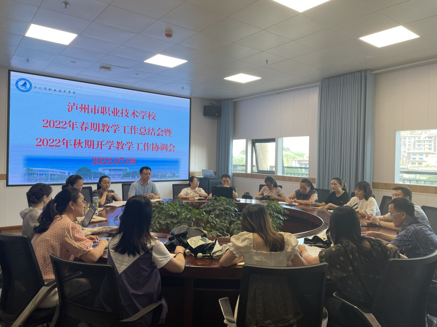 7月8日,泸州市职业技术学校2022年春期教学工作总结会暨2022年秋期开学教学工作布置会在致远楼501举行。参加此次会议的有学校党委副书记、副校长陈飞,教务科主任薛雪,副主任罗勇、杜昱忻,各专业部、年级组负责人。会议由薛雪主持。